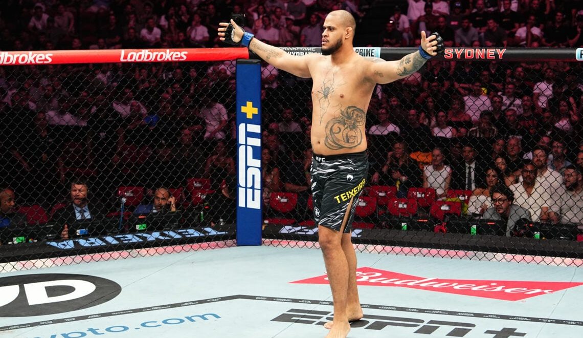 🇧🇷 Tallison “Xicão” Teixeira — SUBIU. Após brilhar no UFC 325 com vitória sobre o experiente Tai Tuivasa, Xicão ganhou mais quatro posições e já ocupa o 11º lugar no peso‑pesado. Com a saída de Malhadinho, foi alçado ao 13º posto. O gigante de 1,98 m está a uma ou duas vitórias do top‑10.